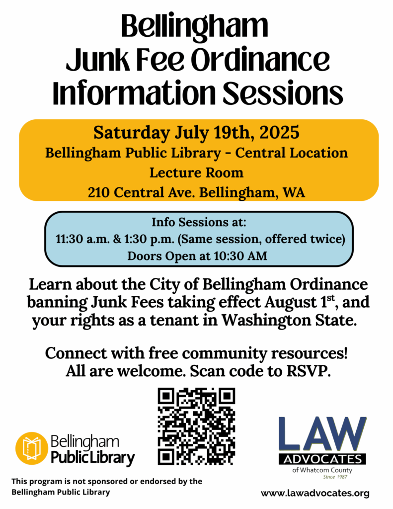 Learn about the City of Bellingham Ordinance banning Junk Fees taking effect August 1st, and your rights as a tenant in Washington State.