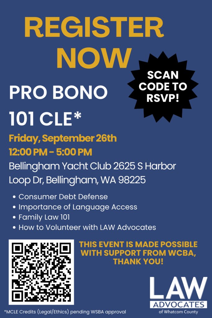 Pro Bono 101 CLE*, an afternoon of learning, connection, and community impact. *(CLE credits pending WSBA approval)